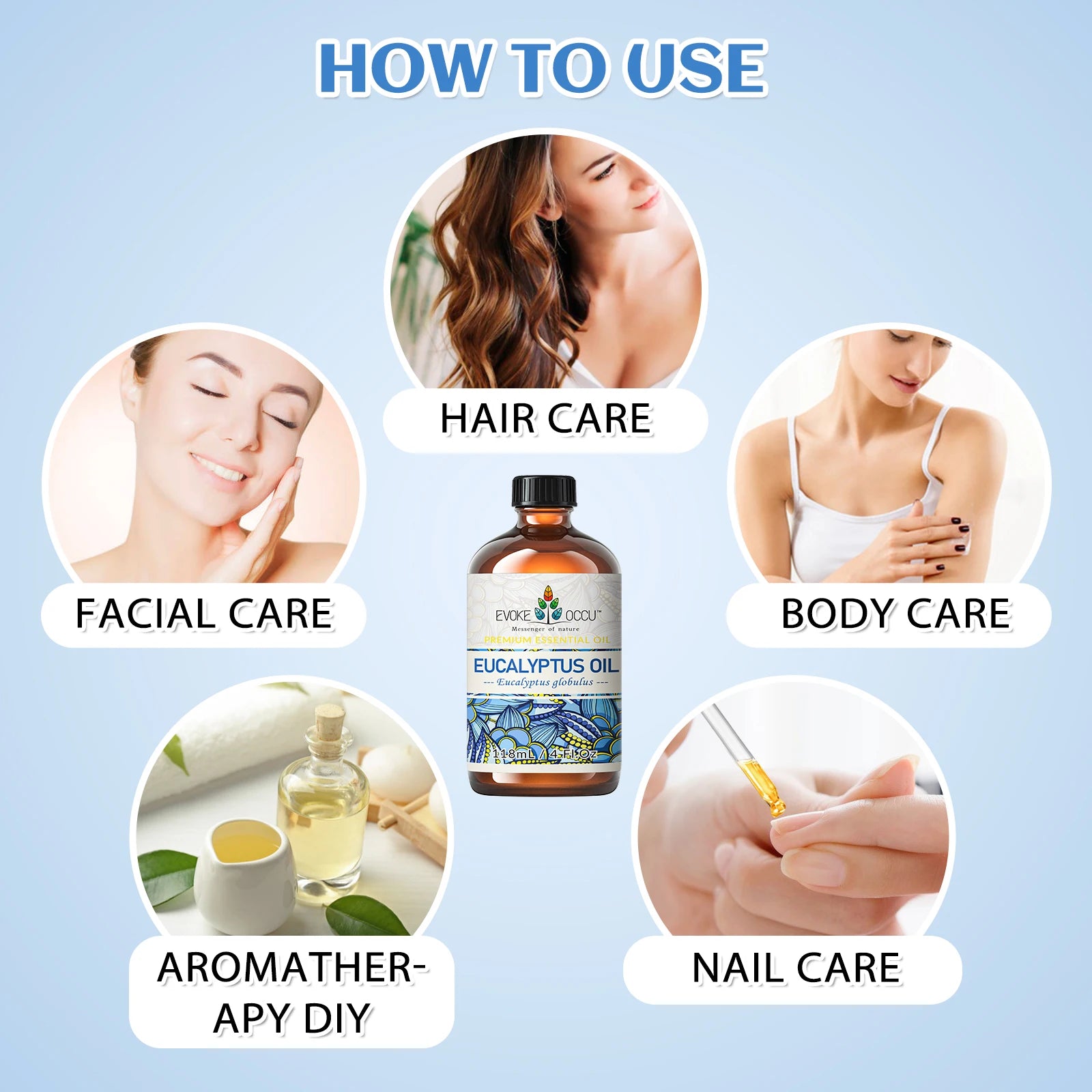 EVOKE OCCU 118ML/4 Fl.Oz. Essential Oils, Premium Eucalyptus Plant Oil for Diffuser, Purifier, Skin, Spa, Candle Soap Making,