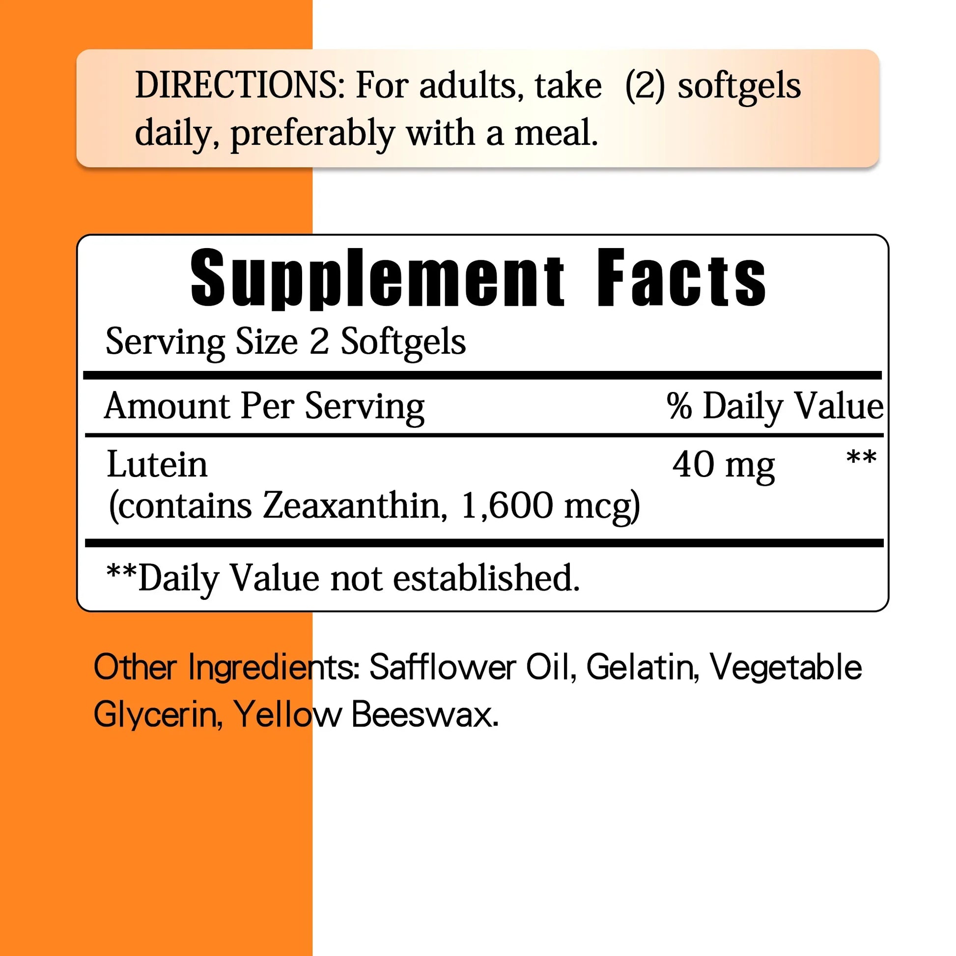 Lutein 40mg - with Zeaxanthin - Supports Healthy Vision, Blue Light Protection, Relieves Eye Fatigue and Dryness - 120 Capsules