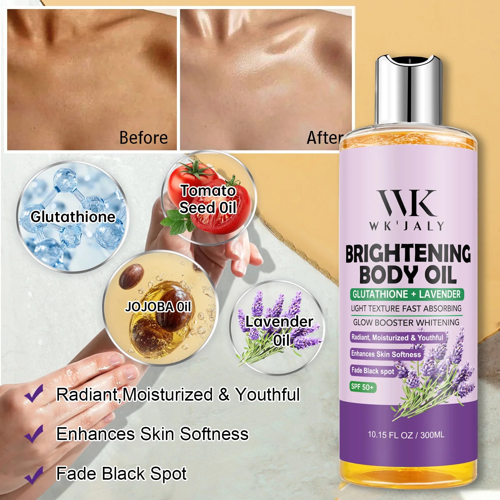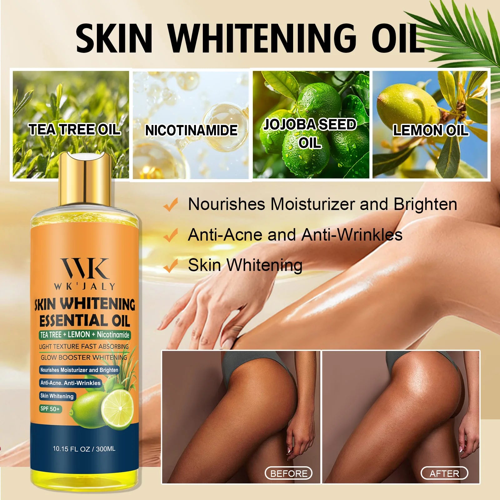 WK JALY Whitening Essential Body Oil Series, Clean Skin, Moisturizing, Nourishing, Remove Acne, Black Spots, for All Skin Types