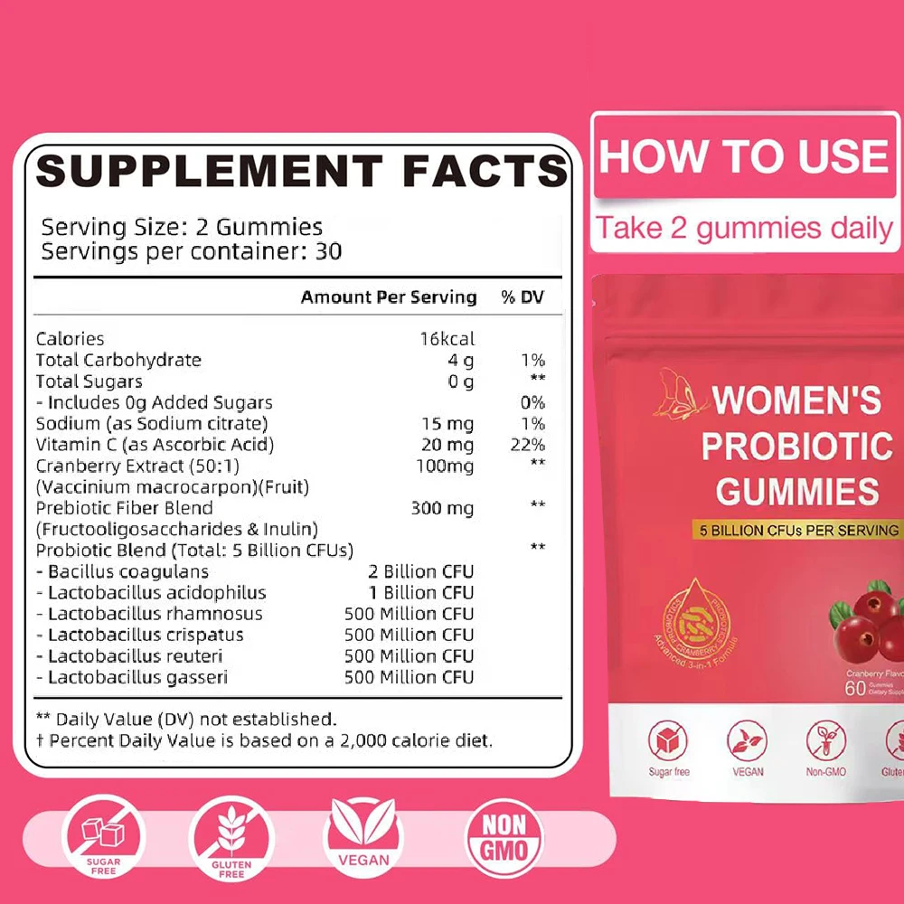 Women Probiotic Gummies, Feminine Balance Gummies, Cranberry Probiotics for Woman Vaginal Health, Yeast pH Balance | 60 Gummies